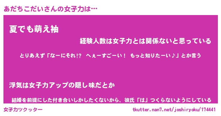 | ポケモン風あだ名 | 『アダチュウ』『アダチダネ』 |