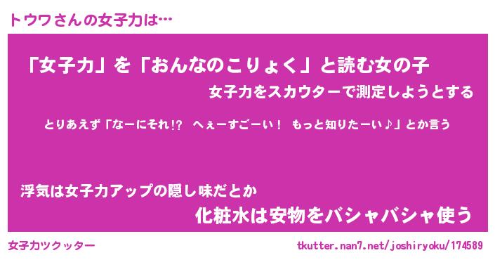 | 女子向けラノベタイトル風あだ名 | 『トウワ姫と円卓の騎士』 |