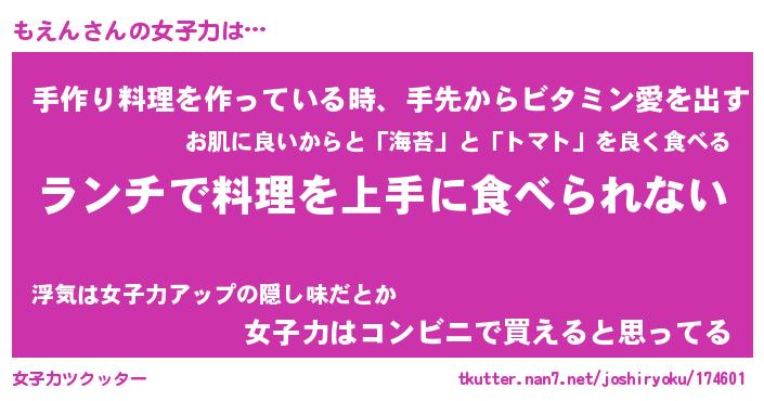 | ヘコむあだ名 | 『もえっふぃ~』『牛乳』『もえ太郎』 |