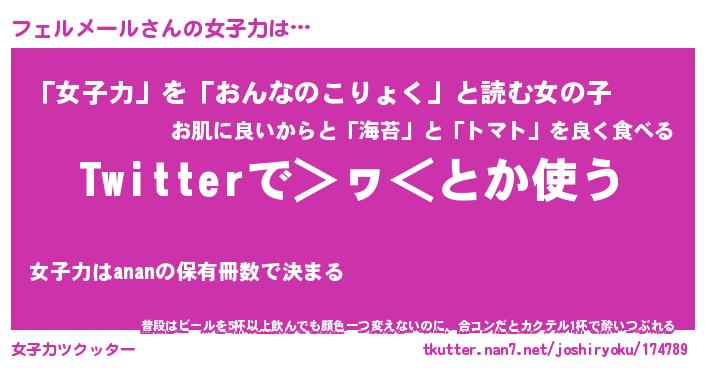 | ヘコむあだ名 | 『フェにゅー』『つくし』『フェを』 |