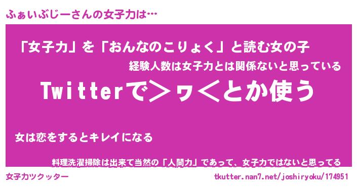 ふぁいぶじーさんの女子力をツクッター!