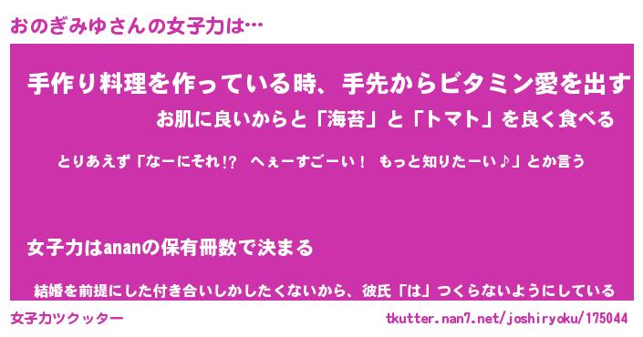 | ヘコむあだ名 | 『おのにゅー』『つくし』 |