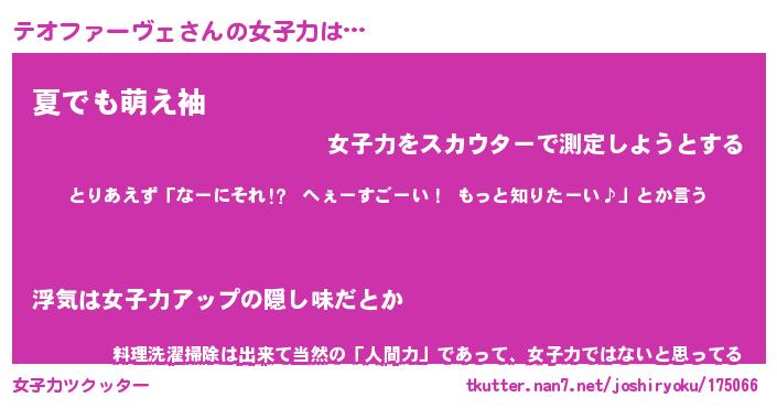 | 胡散臭い通販商品みたいなあだ名 | 『モテモテ間違いなし霊験あらたかなお札…その名も「テオファーヴェ」』 |