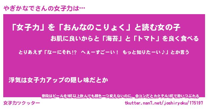 | ヘコむあだ名 | 『やぎにー』『豆乳』『やぎっ子』 |