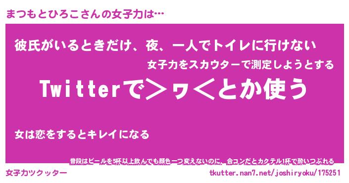 | ヘコむあだ名 | 『まつっふぃ~』『牛乳』『まつを』 |