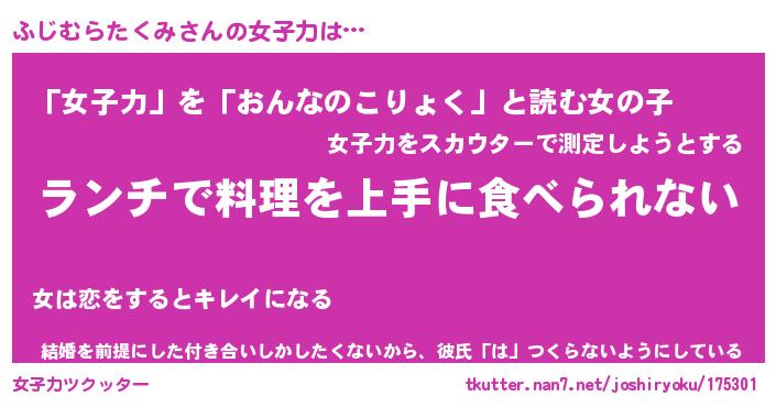 | ヘコむあだ名 | 『ふじにゅー』『酢こんぶ』 |