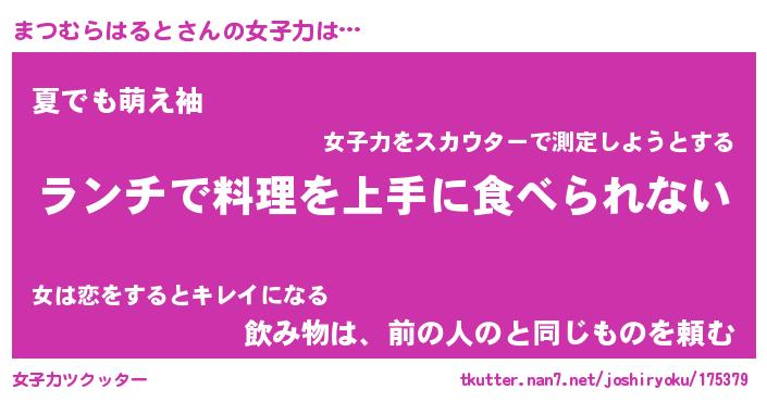 | 恥ずかしいあだ名 | 『プリティーまつむらはると』『まつちん』 |