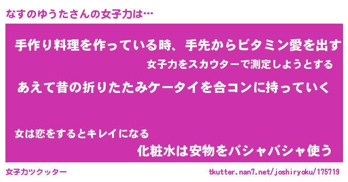 | ヘコむあだ名 | 『なすもー』『つくし』『なすっ子』 |