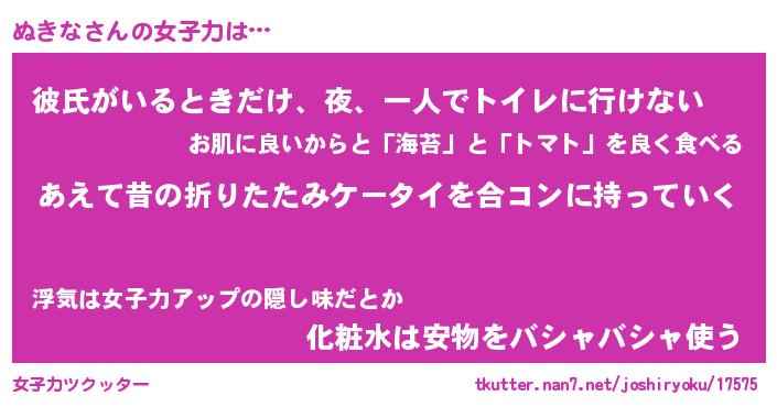 | ヘコむあだ名 | 『ぬきもー』『豆乳』『ぬきっ子』 |