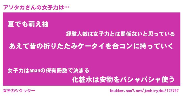 | ヘコむあだ名 | 『アソにゅー』『なまこ酢』 |