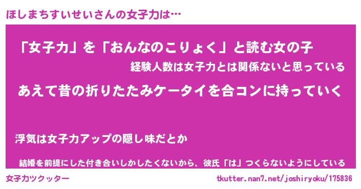 | ヘコむあだ名 | 『ほしにー』『牛乳』『ほしお』 |