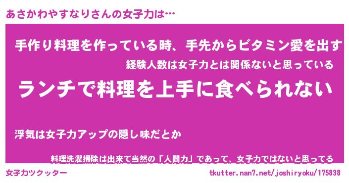 | 肩書あだ名 | 『あさかわやすなり御曹司』 |