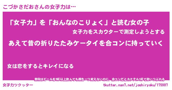 | ヘコむあだ名 | 『こづっふぃ~』『レバニラ』 |