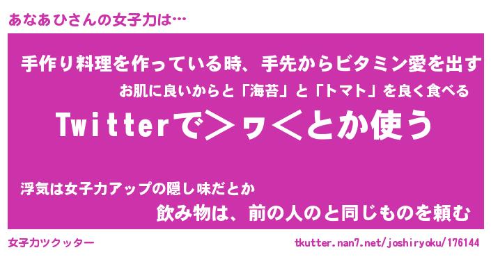 | ファンタジー風あだ名 | 『アナフェル』『エターナルアナアヒー』 |