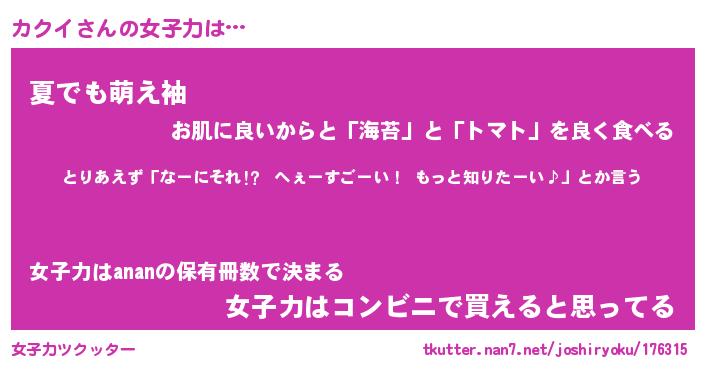 | ヘコむあだ名 | 『カクにゅー』『酢こんぶ』『カクを』 |