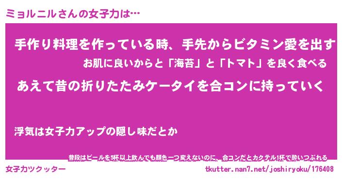 | ヘコむあだ名 | 『ミョふぇ~』『牛乳』『ミョっちょ』 |