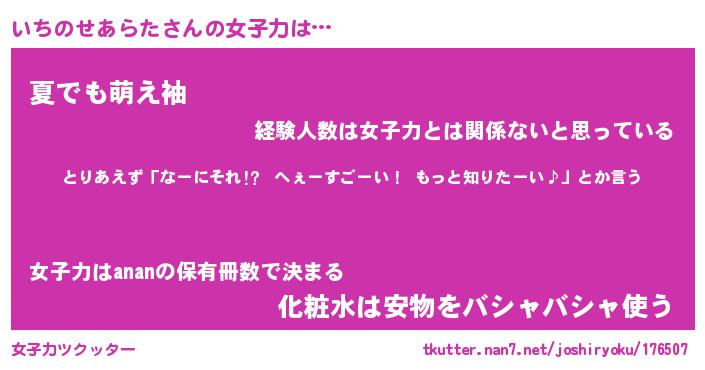 | 女子向けラノベタイトル風あだ名 | 『いちのせあらた姫と円卓の騎士』 |