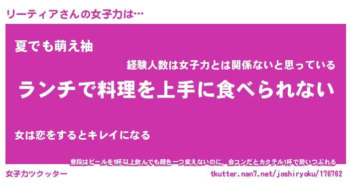 | 恥ずかしいあだ名 | 『プリティーリーティア』『リーっちょ』 |
