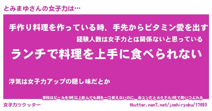 | 恥ずかしいあだ名 | 『プリティーとみまゆ』『とみっちょ』 |