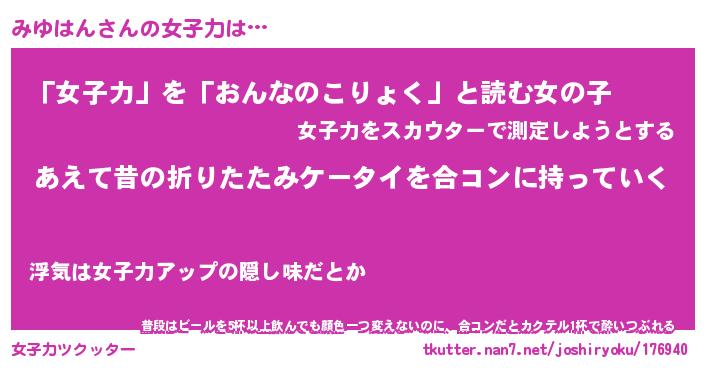 | ヘコむあだ名 | 『みゆにゅー』『レバニラ』 |