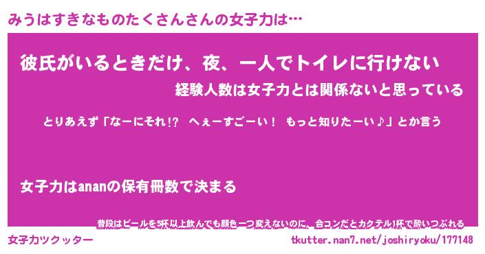 | ヘコむあだ名 | 『みうにー』『つくし』『みうお』 |