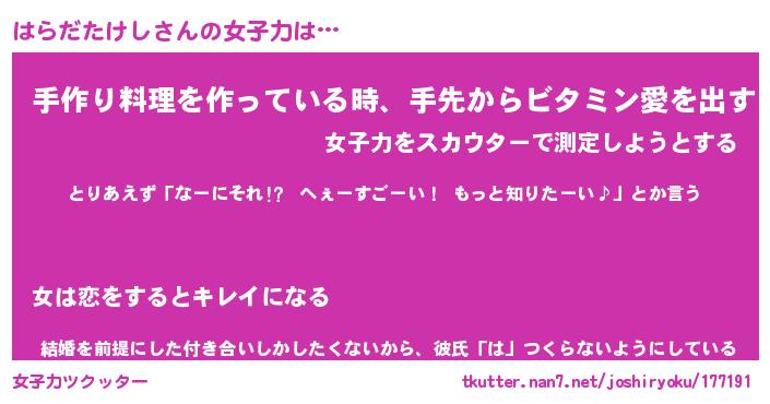 | 恥ずかしいあだ名 | 『プリティーはらだたけし』『はらっちょ』 |