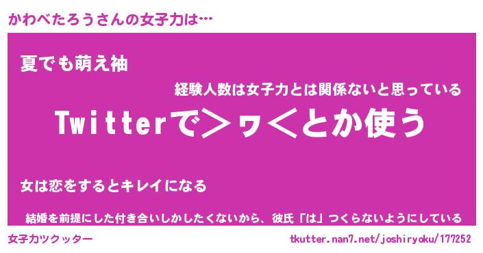 | ヘコむあだ名 | 『かわっふぃ~』『なまこ酢』 |