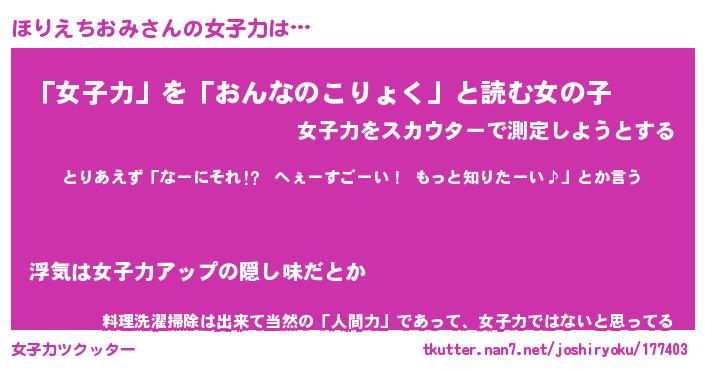 | ヘコむあだ名 | 『ほりっふぃ~』『レバニラ』 |
