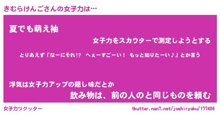 | 恥ずかしいあだ名 | 『プリティーきむらけんご』『きむっちょ』 |