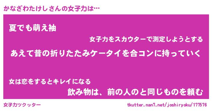| ヘコむあだ名 | 『かなふぇ~』『なまこ酢』『かなお』 |
