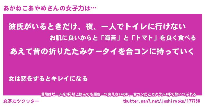 | 恥ずかしいあだ名 | 『プリティーあかねこあやめ』『あかちん』 |