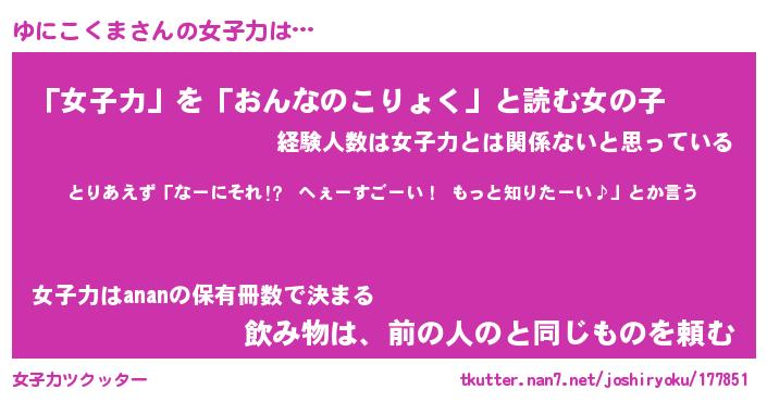 | ファンタジー風あだ名 | 『ユニフェル』『エターナルユニコクマー』 |