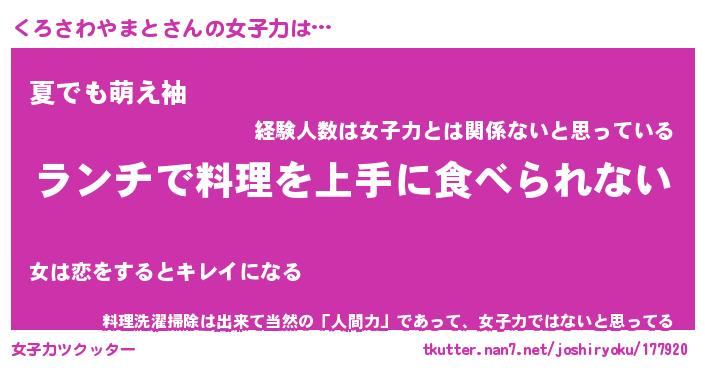 | ヘコむあだ名 | 『くろっふぃ~』『なまこ酢』 |