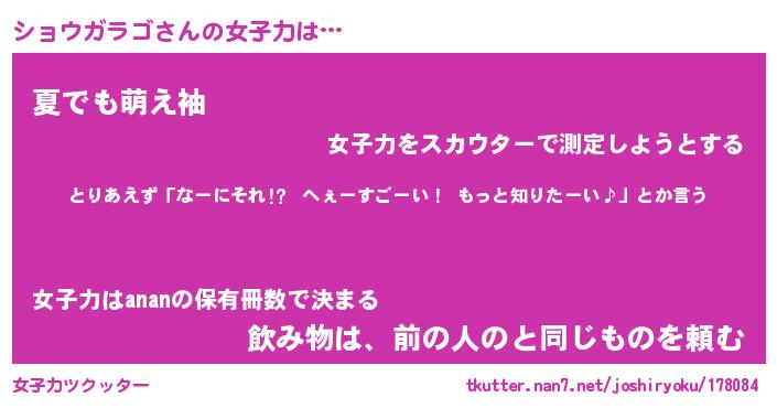 | ヘコむあだ名 | 『ショもー』『なまこ酢』『ショっ子』 |