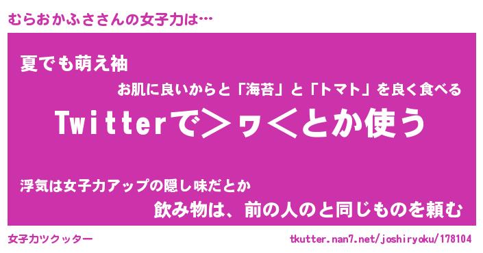| 恥ずかしいあだ名 | 『プリティーむらおかふさ』『むらっちょ』 |