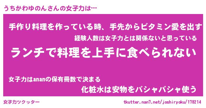 | 肩書あだ名 | 『うちかわゆのん御曹司』 |