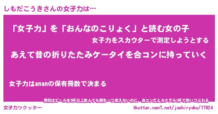| ツイッター | しもだこうきさんのツイッターID『kikurage_man』 |