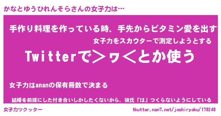 | ヘコむあだ名 | 『かなっふぃ~』『牛乳』 |
