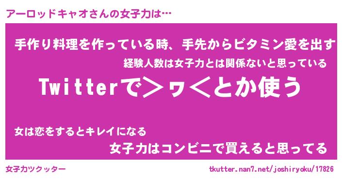 | 女子向けラノベタイトル風あだ名 | 『アーロッドキャオ姫と円卓の騎士』 |