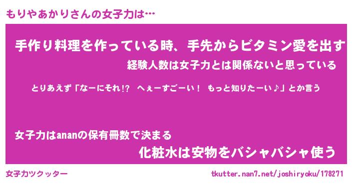 | 恥ずかしいあだ名 | 『プリティーもりやあかり』『もりっちょ』 |
