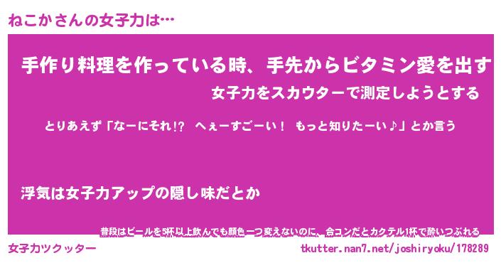 | ヘコむあだ名 | 『ねこふぇ~』『つくし』『ねこっぺ』 |