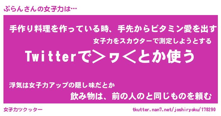 | 男性向けラノベタイトル風あだ名 | 『ぷらんの憂鬱』 |