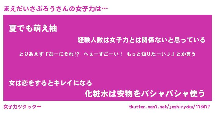 | 胡散臭い通販商品みたいなあだ名 | 『モテモテ間違いなし水晶球…その名も「まえだいさぶろう」』 |
