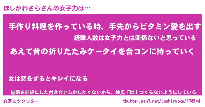 | ヘコむあだ名 | 『ほしもー』『つくし』『ほし太郎』 |