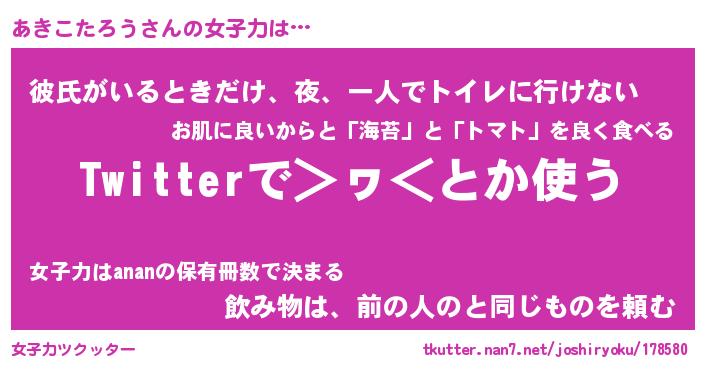 | ヘコむあだ名 | 『あきにー』『豆乳』『あきっ子』 |