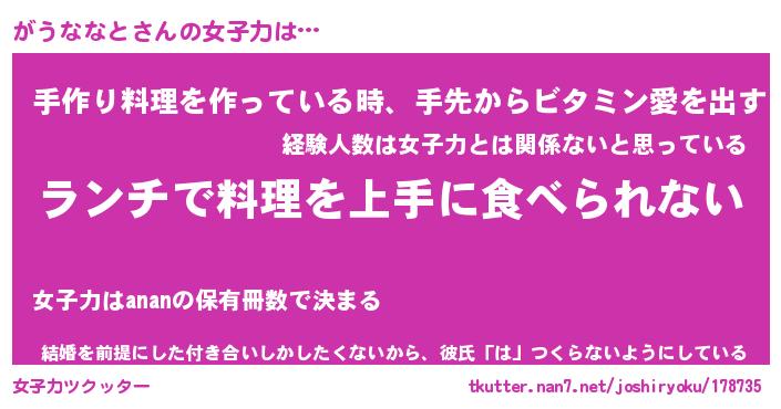 | ヘコむあだ名 | 『がうにゅー』『つくし』『がうっぺ』 |