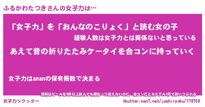 | 女子向けラノベタイトル風あだ名 | 『(仮)ふるかわたつきのやんごとなき事情』 |