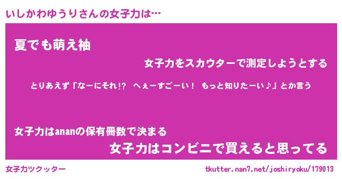 | 恥ずかしいあだ名 | 『プリティーいしかわゆうり』『いしちん』 |