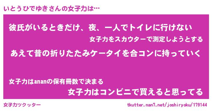 | ヘコむあだ名 | 『いとにゅー』『豆乳』『いとぷりん』 |