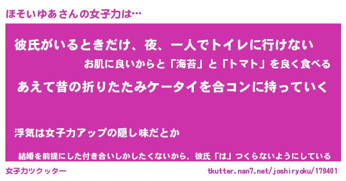 | 胡散臭い通販商品みたいなあだ名 | 『必ず成功する霊験あらたかなお札…その名も「ほそいゆあ」』 |